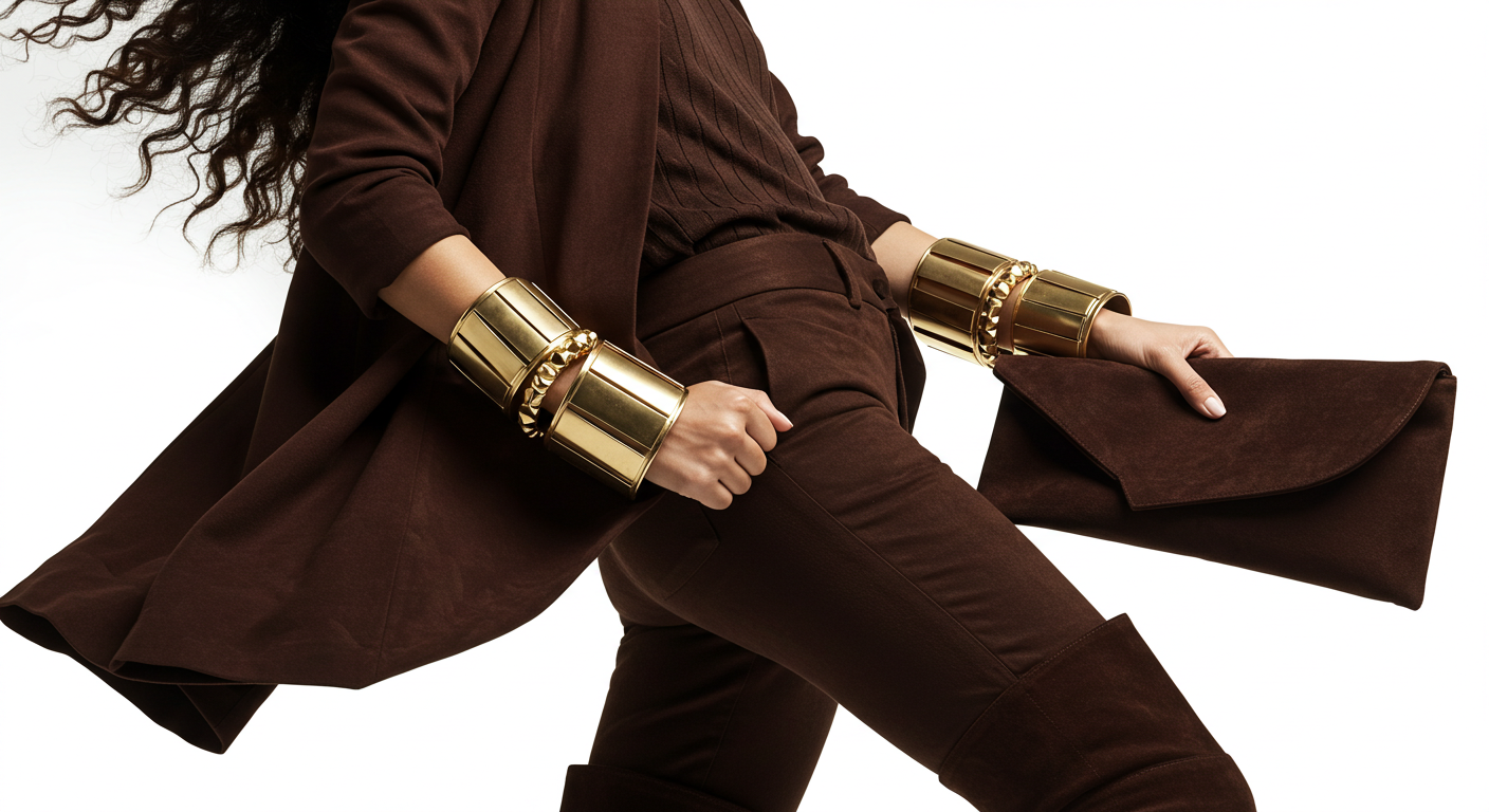 This exquisite small clutch is crafted from premium nubuck suede. Previously available in a versatile tan shade, this stylish accessory now debuts in a rich hot chocolate hue for the fall and winter season.